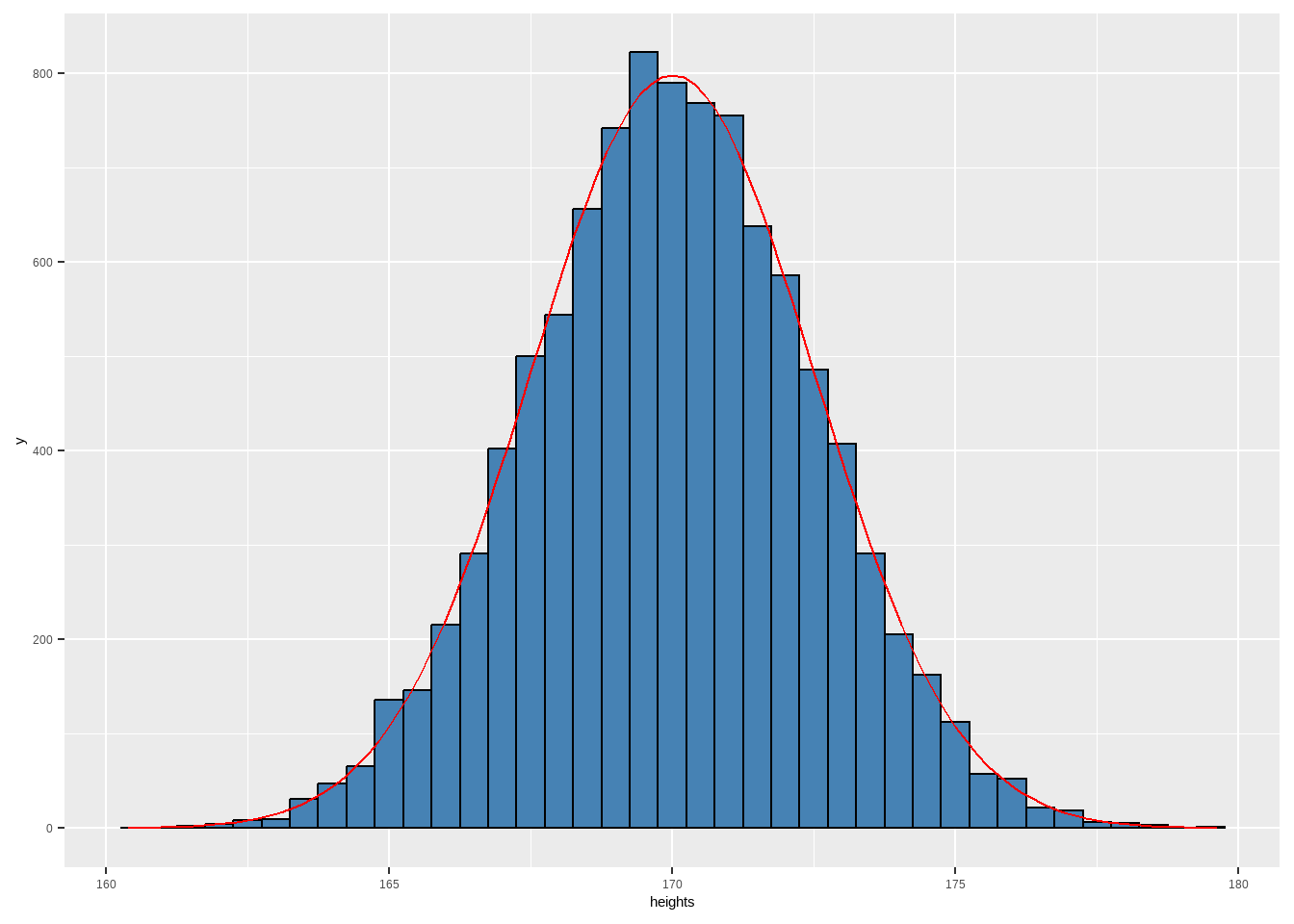 df <- tibble(heights = rnorm(10000, mean = 170, sd = 2.5))