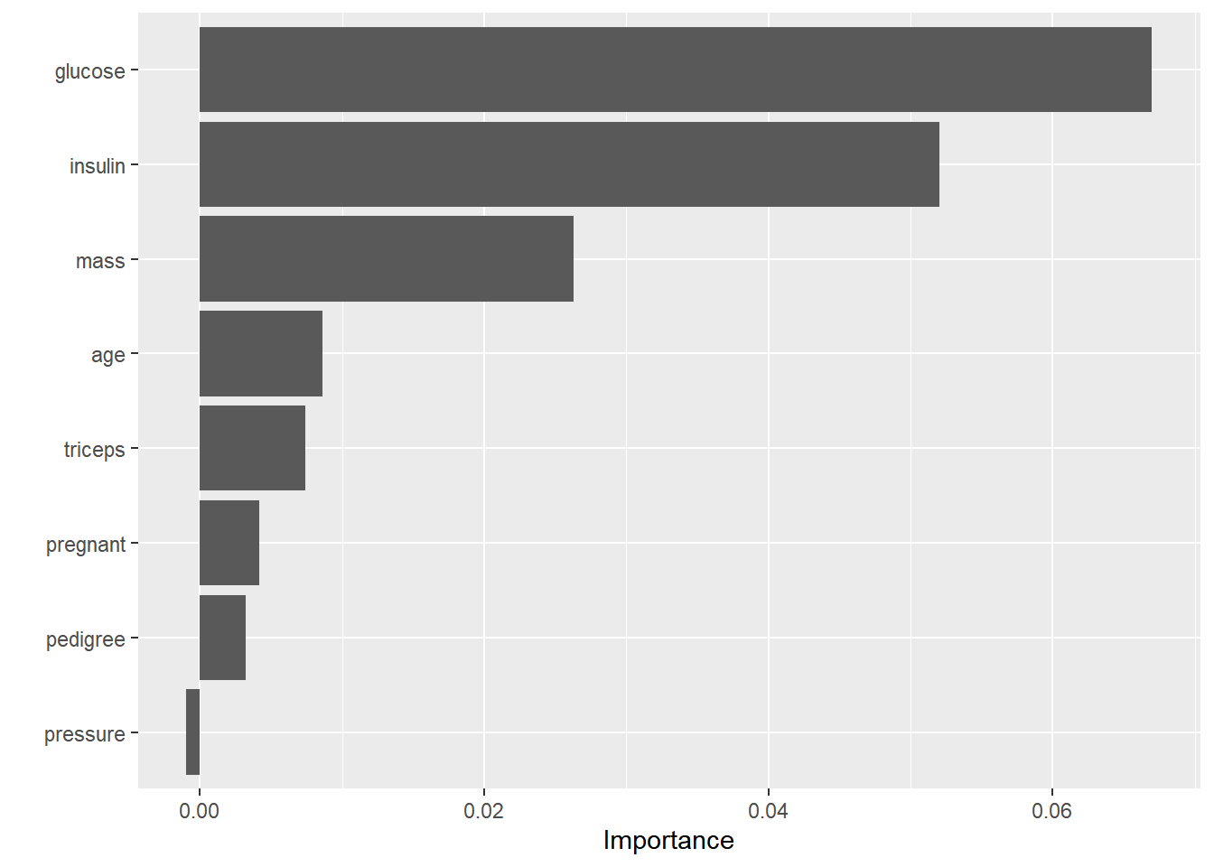 set_engine()中添加importance = TRUE参数,以保存相关变量的重要性信息,用于后续使用vip包可视化模型变量的重要性。